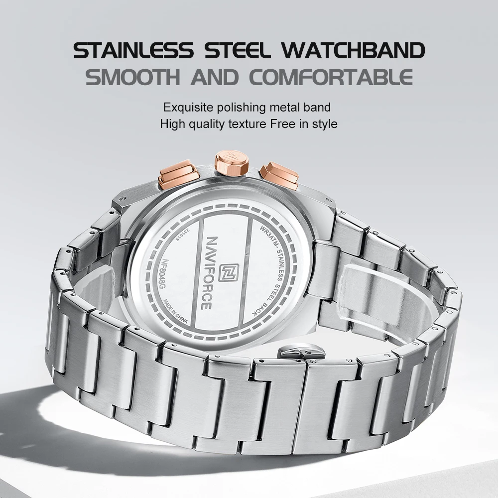 Celebrate a bond that transcends time with a gift that speaks of harmony and shared journeys. The NAVIFORCE NF8048 Couple Set is designed for lovers who appreciate the beauty of "Simple" yet profound elegance. These matching timepieces feature a sleek, "Numberless" dial, creating a soulful and modern aesthetic that symbolizes a love without limits. While the design remains minimalist on the surface, the interior is a powerhouse of functionality, featuring a Complete Calendar, Chronograph, and Shock Resistant technology. Whether you are celebrating a quiet anniversary or navigating the world together, these watches serve as a constant, luminous reminder of your connection. At Day by Day, we believe that the most precious moments are the ones shared with another; this set is crafted to honor those moments with timeless style and unwavering precision.
