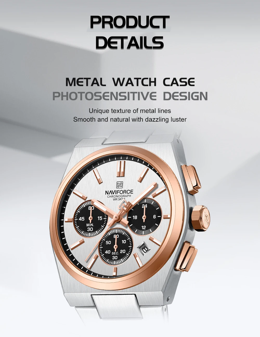 Dual-Design Integrity: Crafted with high-quality Alloy cases and durable Stainless Steel bands for a cohesive, luxury look.